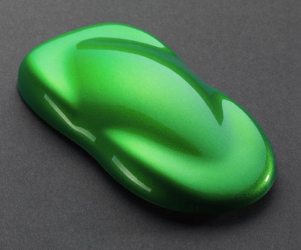HOUSE OF KOLOR SHIMRIN2 PREMIUM "PLANET GREEN" STRAIGHT FROM THE HOK FACTORY!!! THESE ARE INCREDIBLE FACTORY KOLORS THAT ARE SHOW QUALITY FOR YOUR NEXT PROJECT - PHOTO IS OVER A SILVER BASE/SEALER